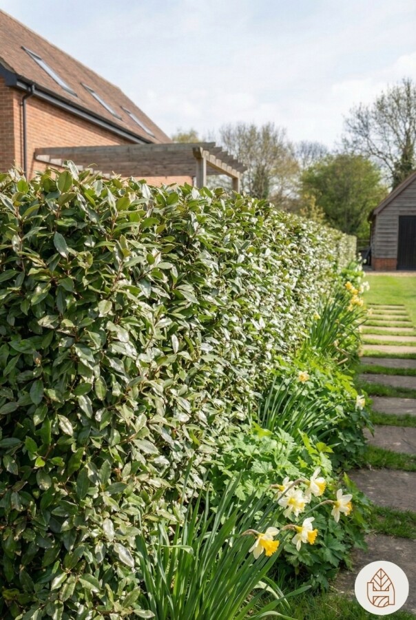Elaeagnus × ebbingei är en populär häckväxt tack vare sina silverfärgade blad och tålighet mot vind. Denna häck kan växa snabbt och bilda en tät hög häck som ger bra insynsskydd. Silverbuske häckar är också kända för sina små, doftande blommor som lockar bin och fjärilar.
