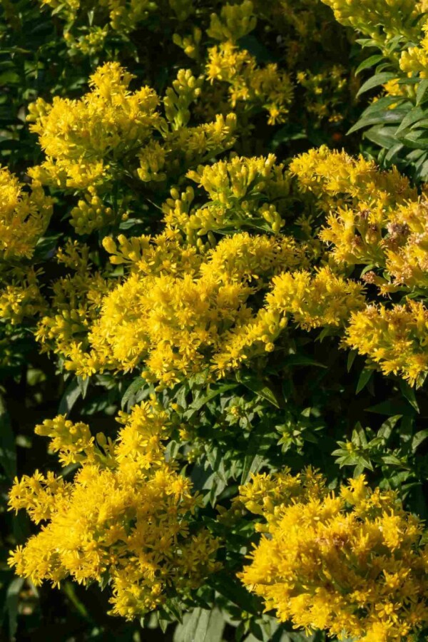 Trädgårdsväxter som Solidago 'Golden Mosa' kan köpas för att förhöja trädgårdens skönhet.