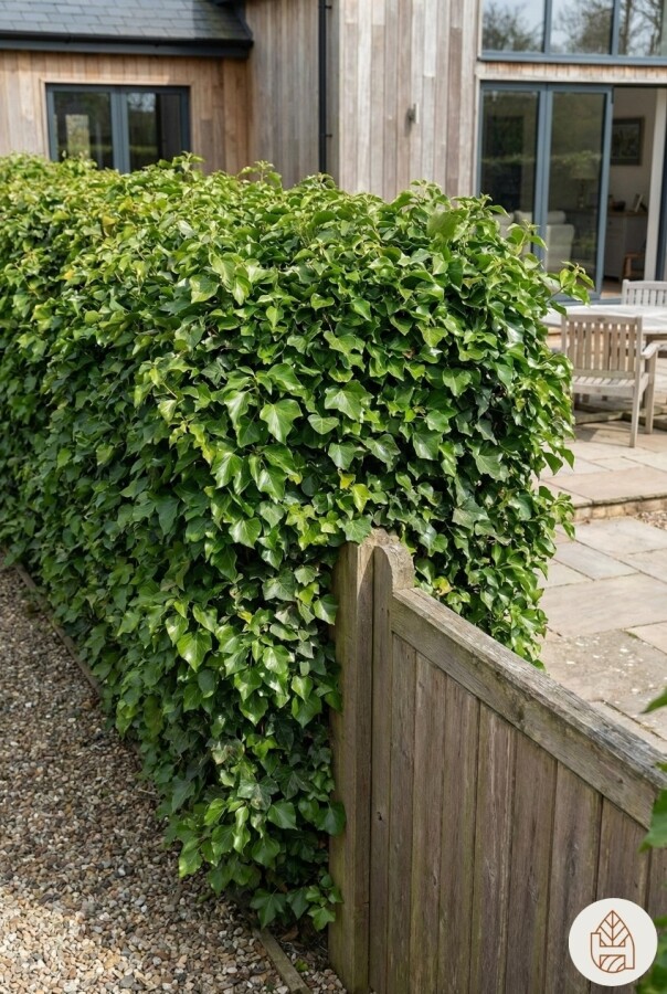 - Snabbväxande: Med en tillväxthastighet på 50–70 cm per år bildar Hedera helix snabbt en tät häck.
