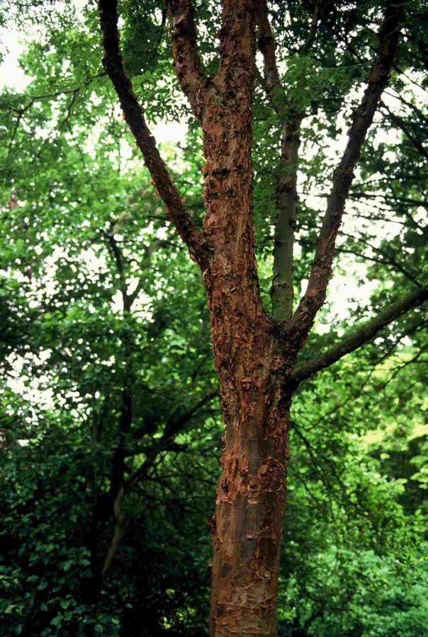 - Barken på Acer griseum är kanelbrun och flagnar av i tunna lager, vilket ger ett dekorativt utseende.