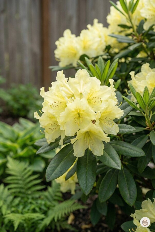 Rhododendron 'Princess Anne' har vackra gula blommor som blommar under april och maj. Denna buske är ett utmärkt val för trädgården tack vare sina underhållsfria egenskaper och vintergröna blad.