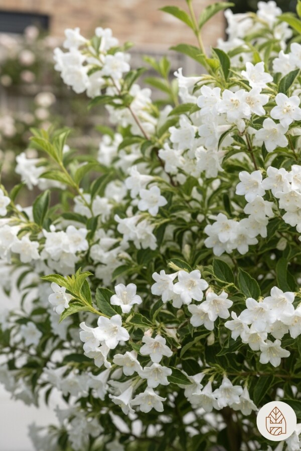 Trädgårdsväxter som Weigela 'Candida' är idealiska för att skapa vackra trädgårdslandskap.